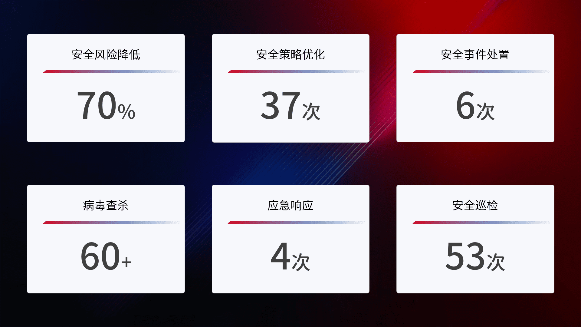 提供全面的安全事件报告体系,,包括处置报告、、、、周报、、、、季度和年度总结,,,,结合持续监控,,,,帮助客户深入了解网络安全状况。。。。